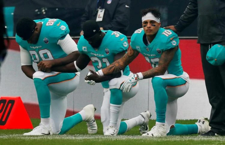 A Miami Dolphins team official denied that Niad-Hannah was ejected for kneeling or for comments about the President.